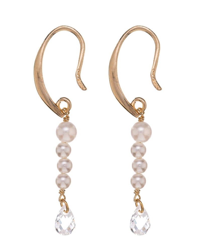 Orecchini Pendenti in argento 925 bagno oro giallo con perle e zircone al finale.