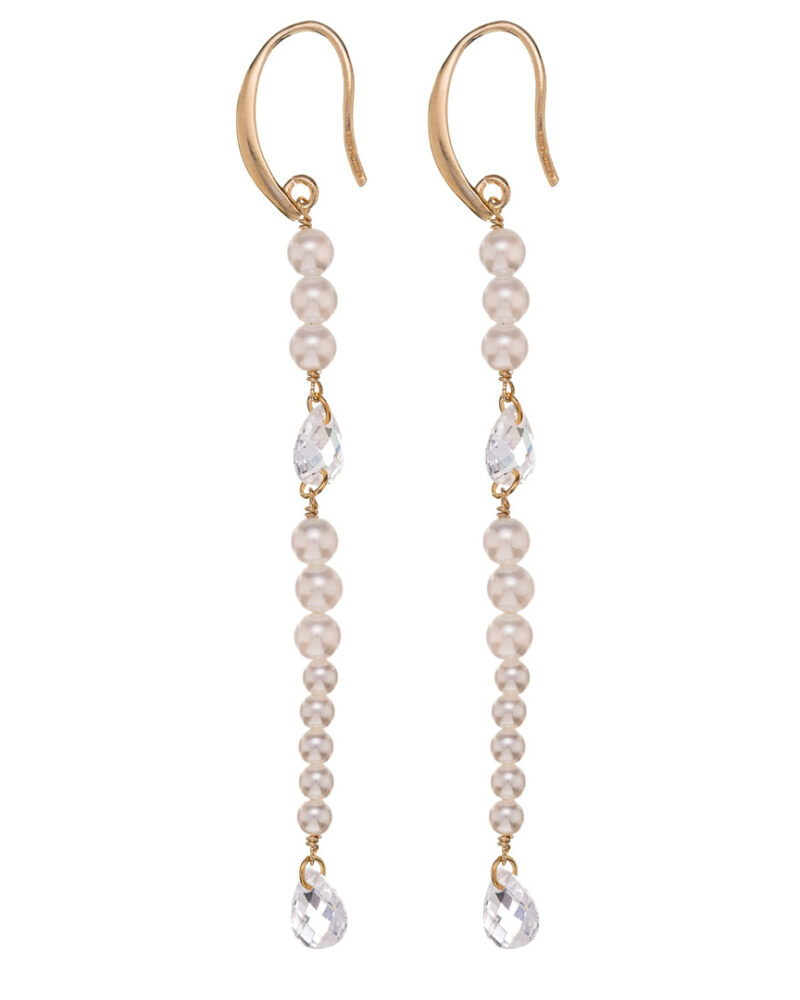Orecchini pendenti in argento 925 bagno oro giallo. Perle e zirconi.