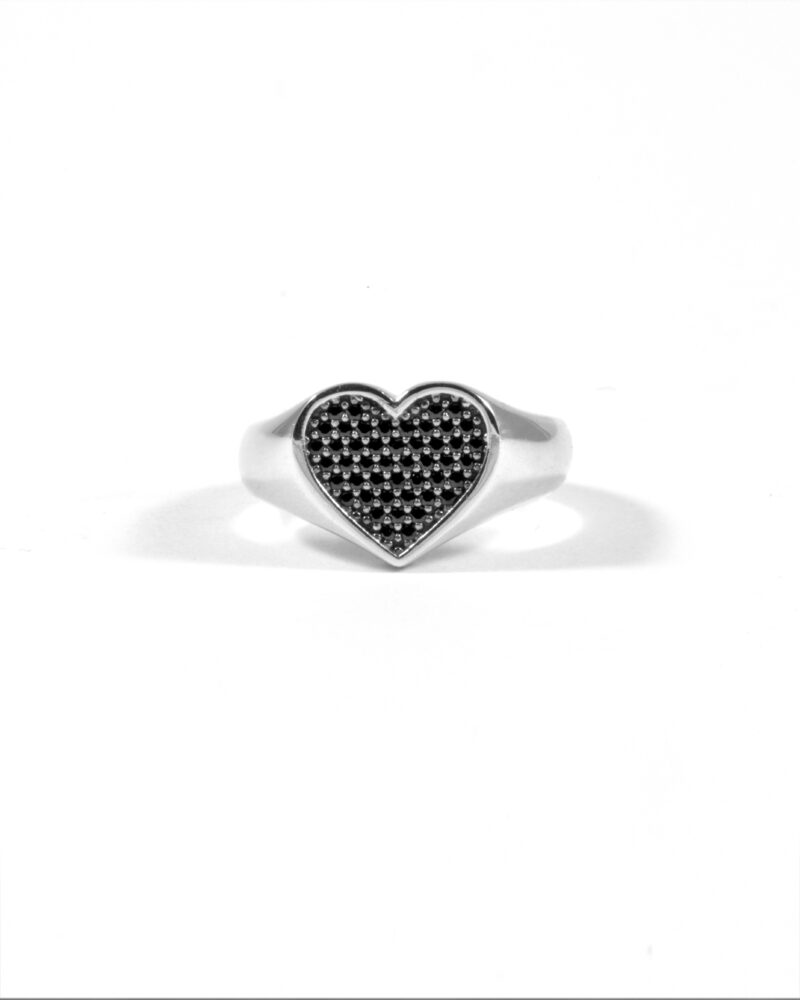 Anello chevalier cuore con zirconia cubica nera in argento 925.