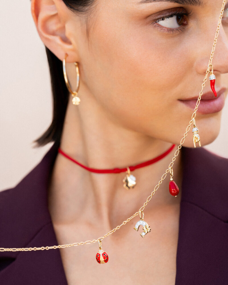 Il charm Coccinella è un simbolo di fortuna e positività, realizzato in pregiato argento 925 e impreziosito da ali smaltate a mano in brillante rosso. I puntini, arricchiti da piccoli zirconi scintillanti, conferiscono al gioiello un tocco di eleganza e raffinatezza. Grazie al pratico anello, può essere facilmente agganciato a bracciali e collane, diventando un dettaglio prezioso da portare sempre con sé. Perfetto per chi desidera un accessorio che unisca gioia, stile e buon auspicio.